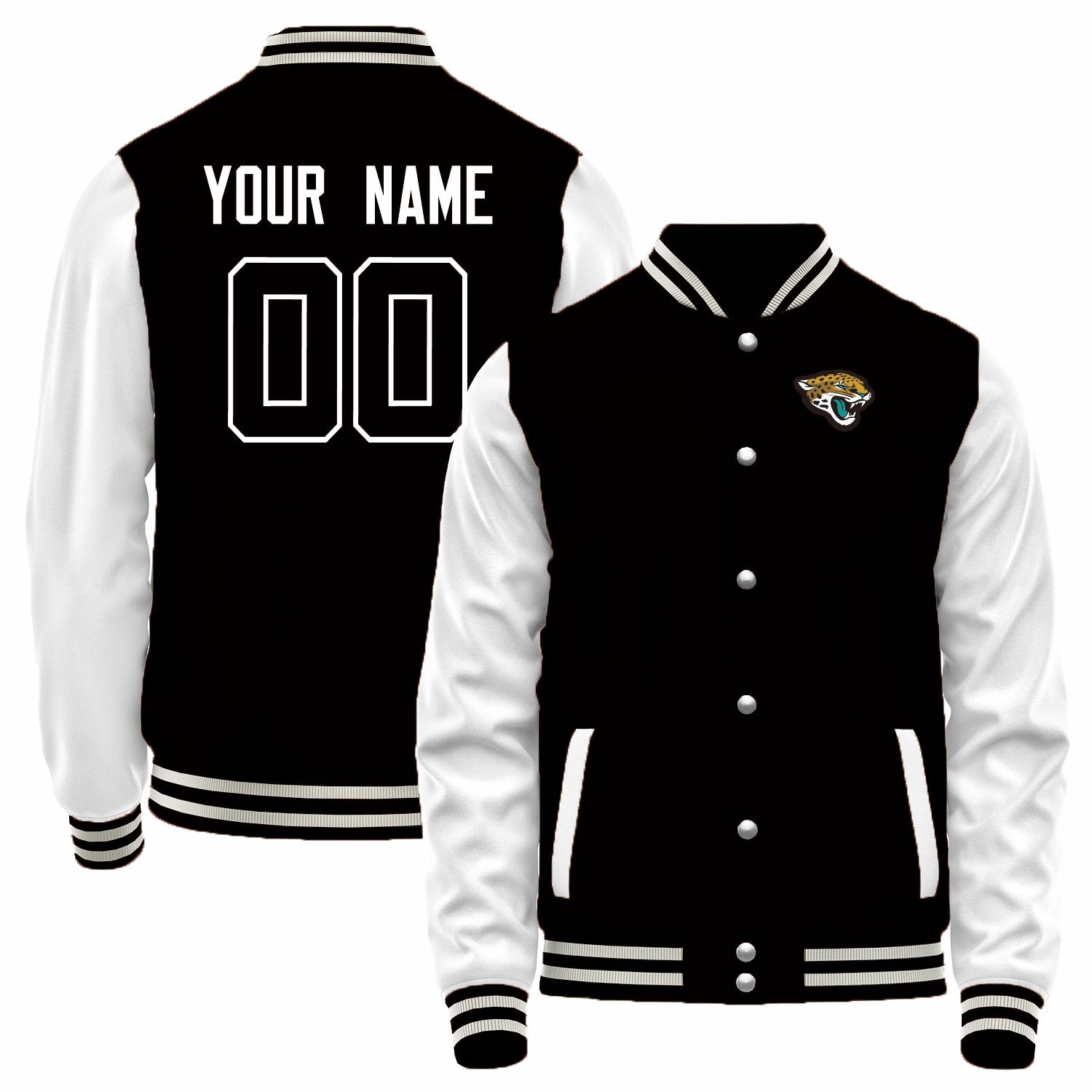 Custom J.Jaguars Black-White Bomber Full-Snap Varsity Letterman Jacket