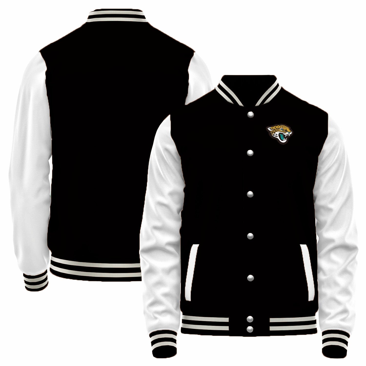 Custom J.Jaguars Black-White Bomber Full-Snap Varsity Letterman Jacket